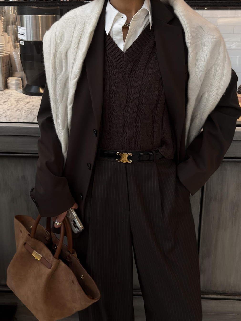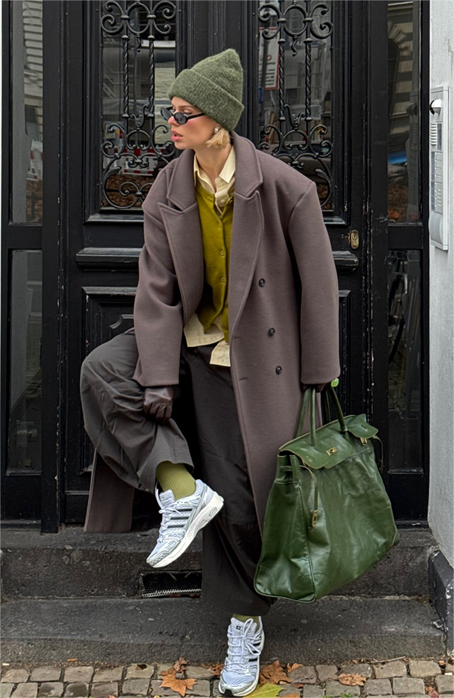 如果敢再進一步,疊穿其實很能吃豐富的顏色組合:焦糖+奶白、深綠+棕色、霧藍+灰調,這些在冬天特別有氛圍,不會太搶戲,但就是會讓人覺得「嗯~很有質感」。