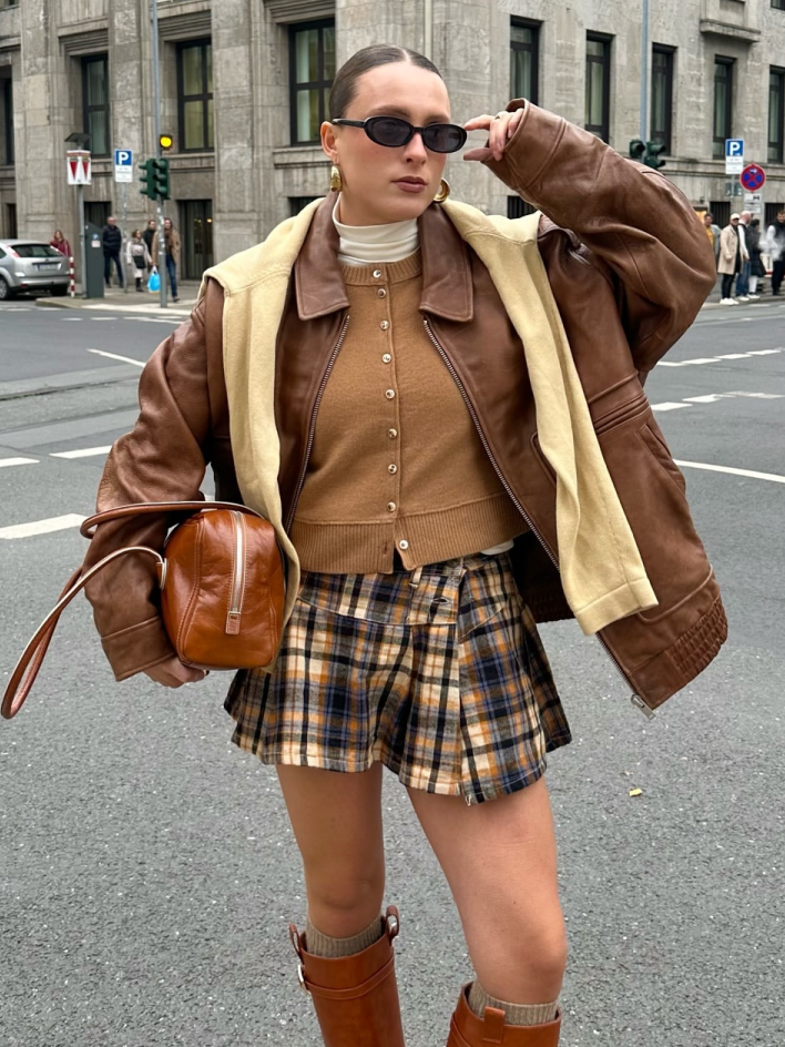 反過來短款外套就像疊穿裡的小跳tone,瞬間給造型加一段輕快節奏,讓冬天不再只有穩重,多了點俏皮的銳利感。