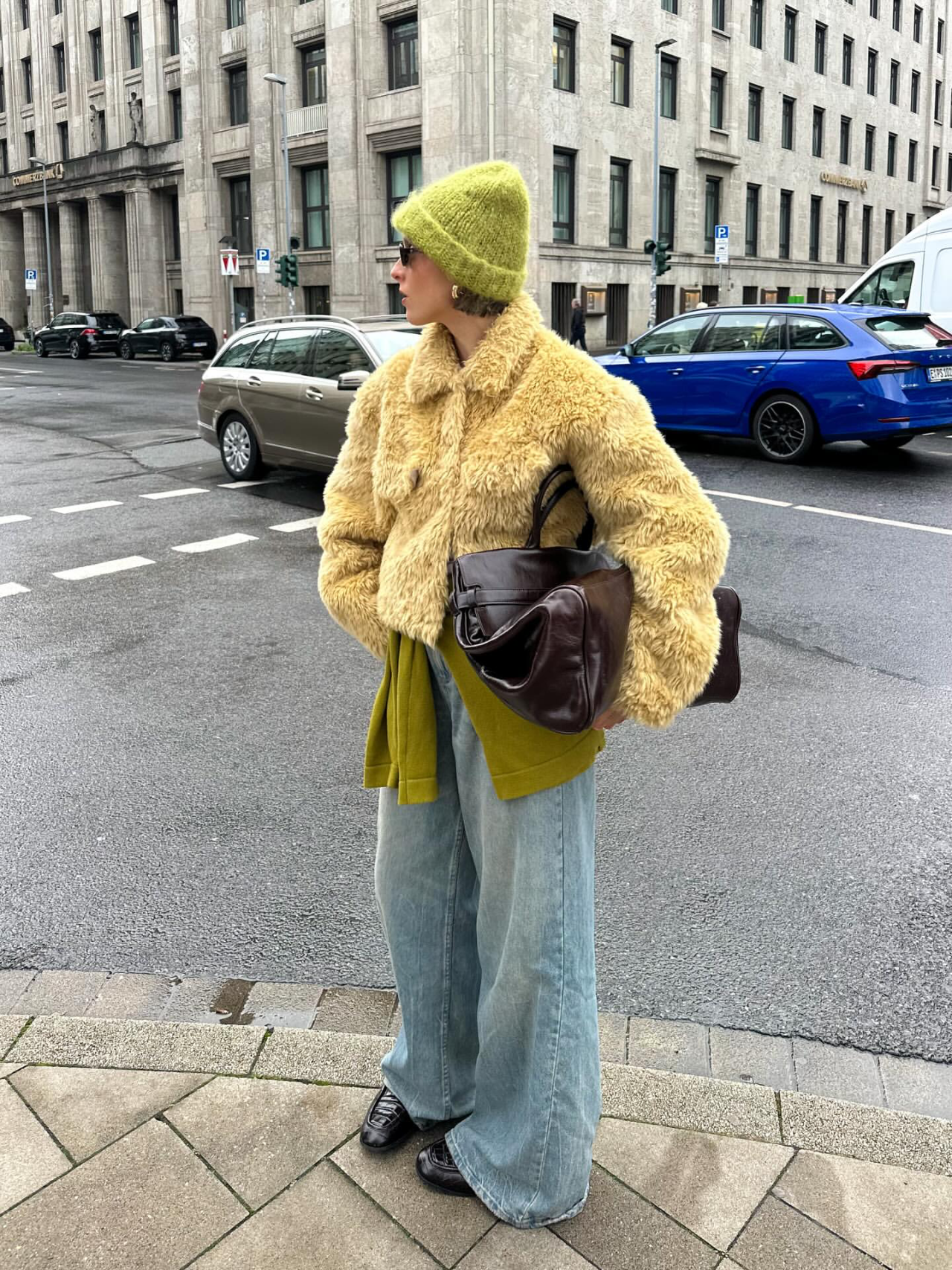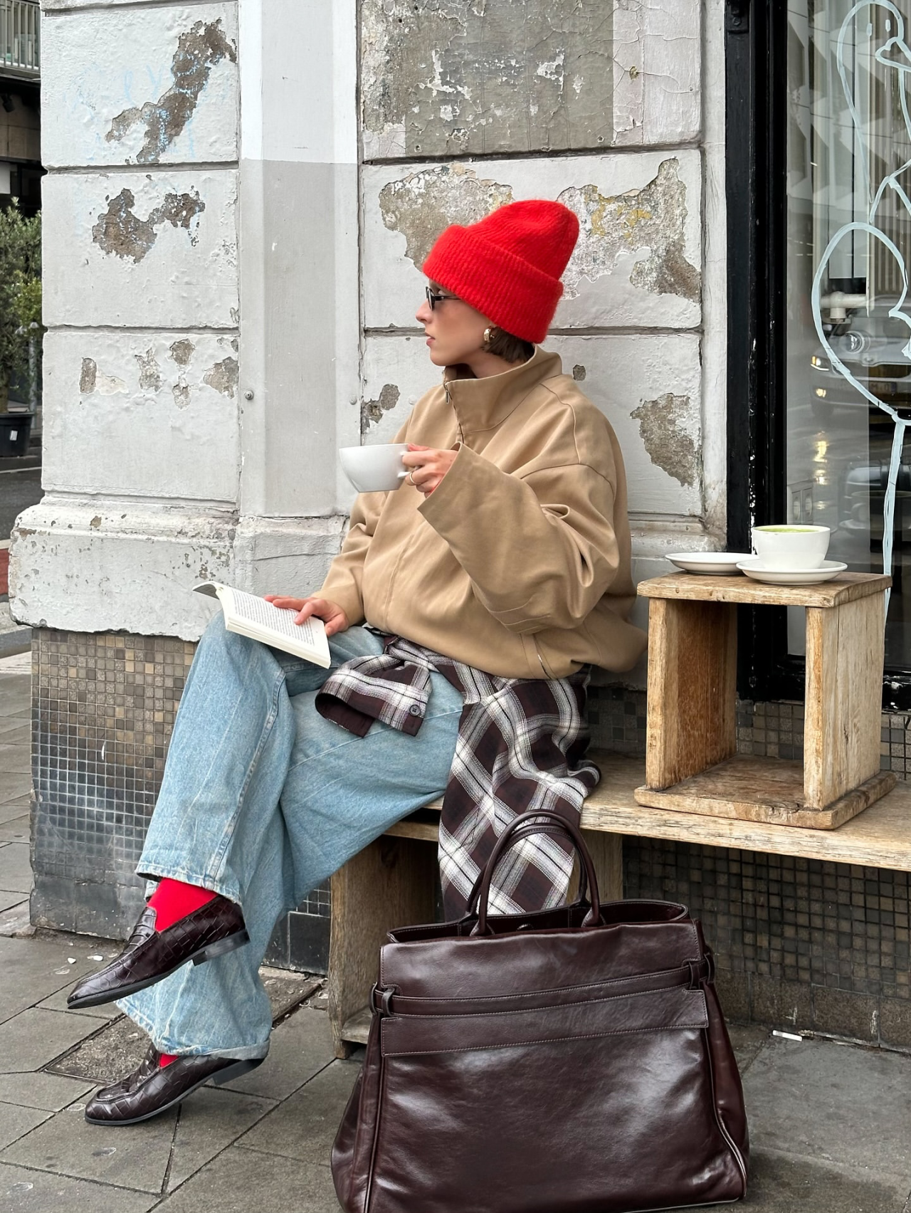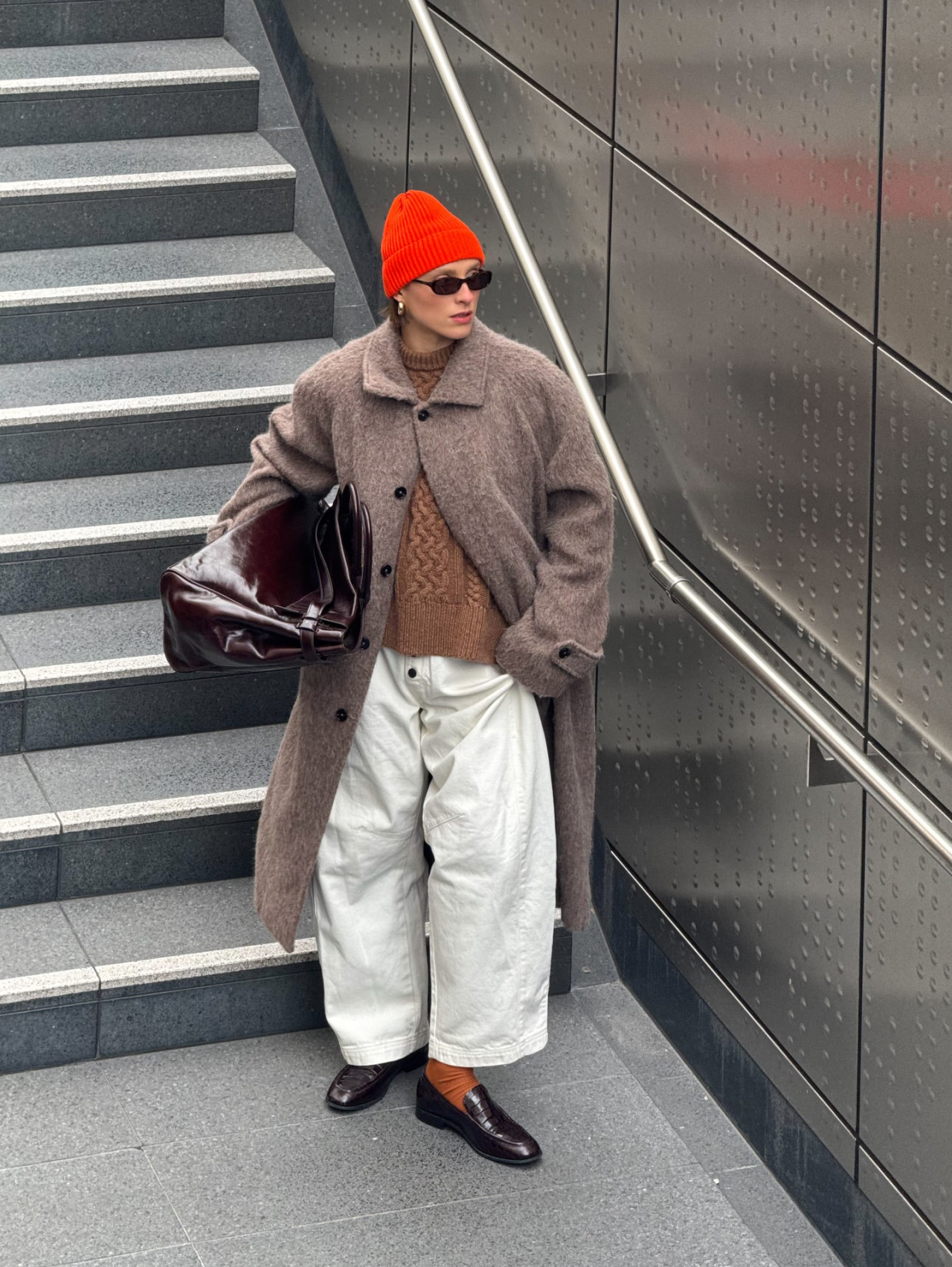 冷空氣把衣服一層一層疊起來變得超合理,也讓整個造型因為「多那麼一點點」就變得超有立體感、超有故事感。