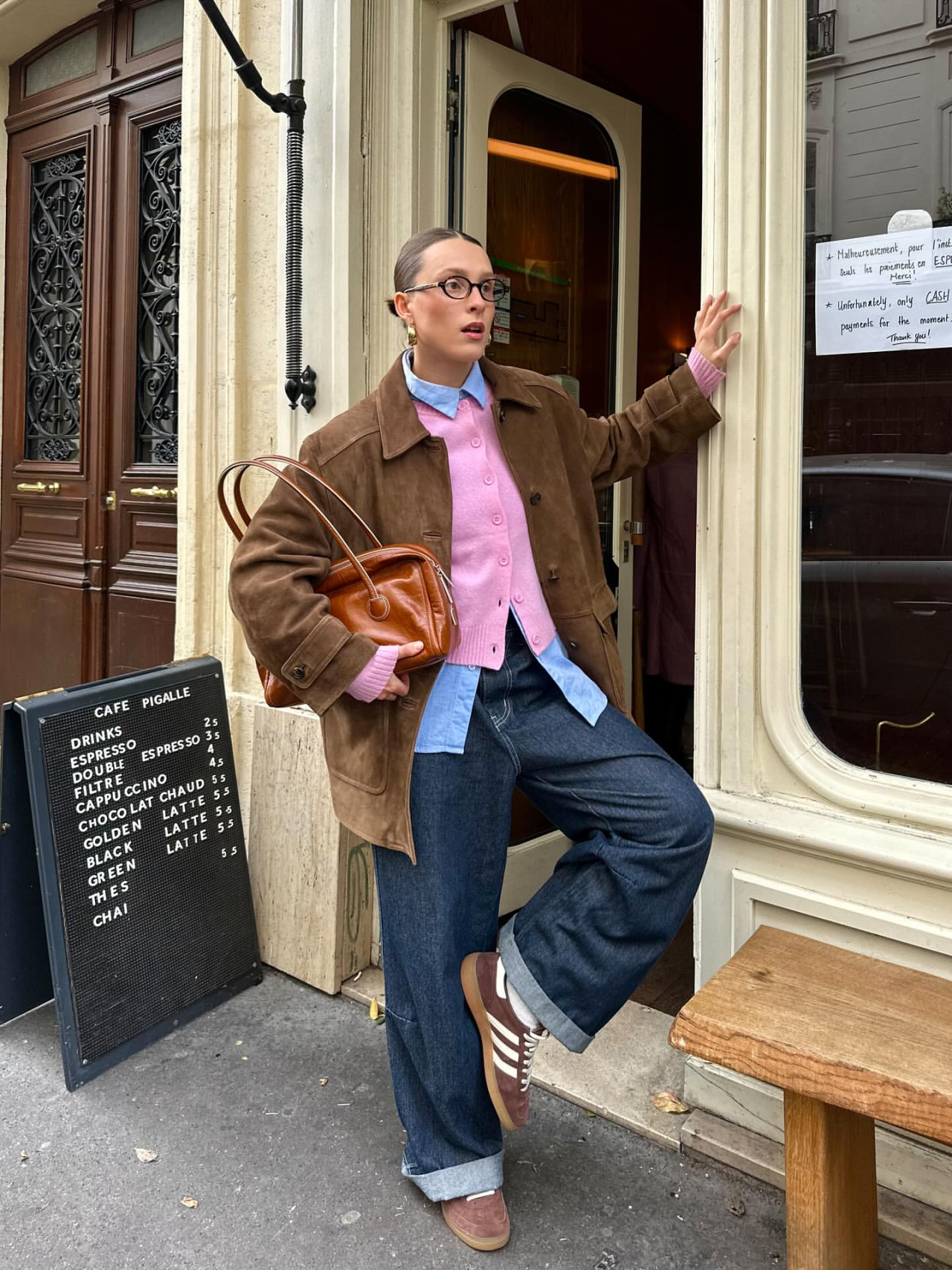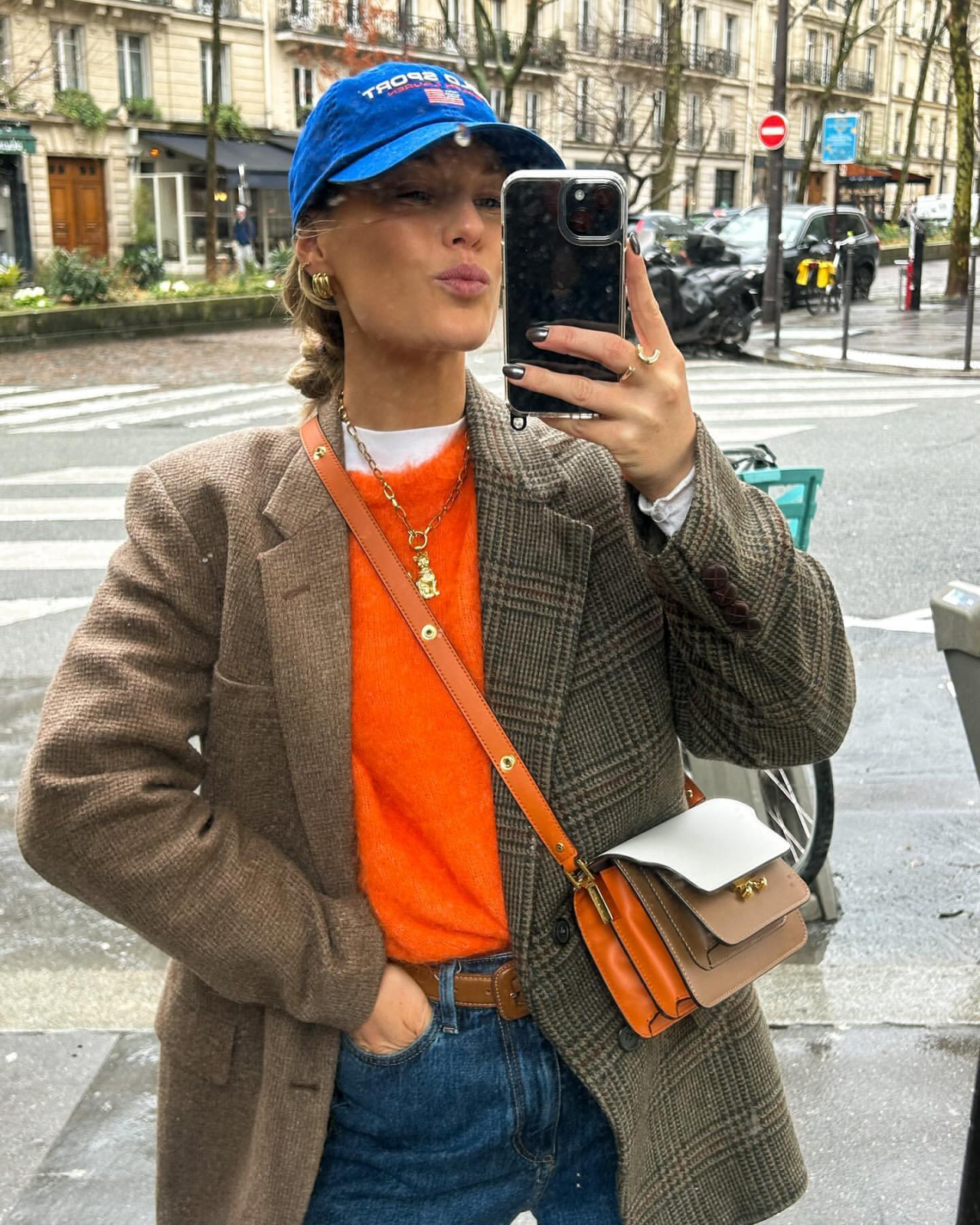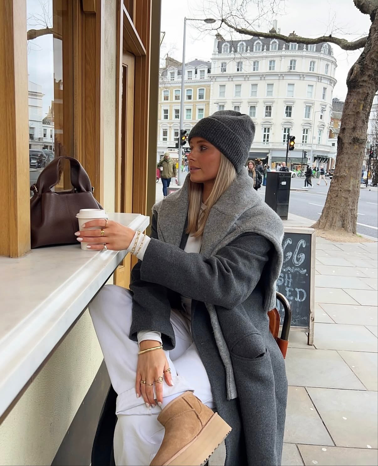 冷空氣把衣服一層一層疊起來變得超合理,也讓整個造型因為「多那麼一點點」就變得超有立體感、超有故事感。