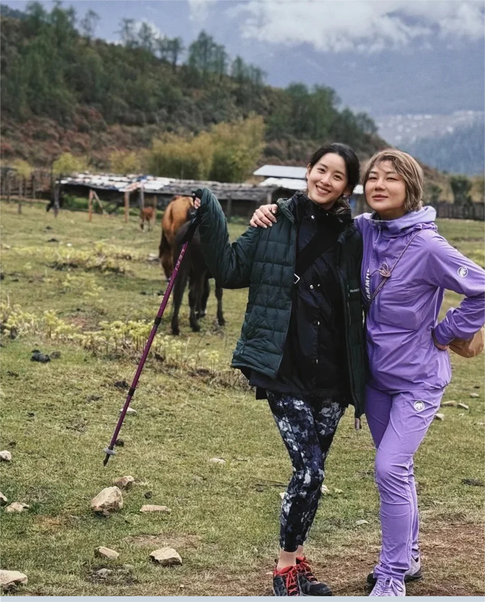 章澤天在戶外直接外套疊外套硬是抗低溫,裡面再搭SWEATY BETTY Power熱力系列緊身褲,鬆緊剛剛好,整個造型超有呼吸感。