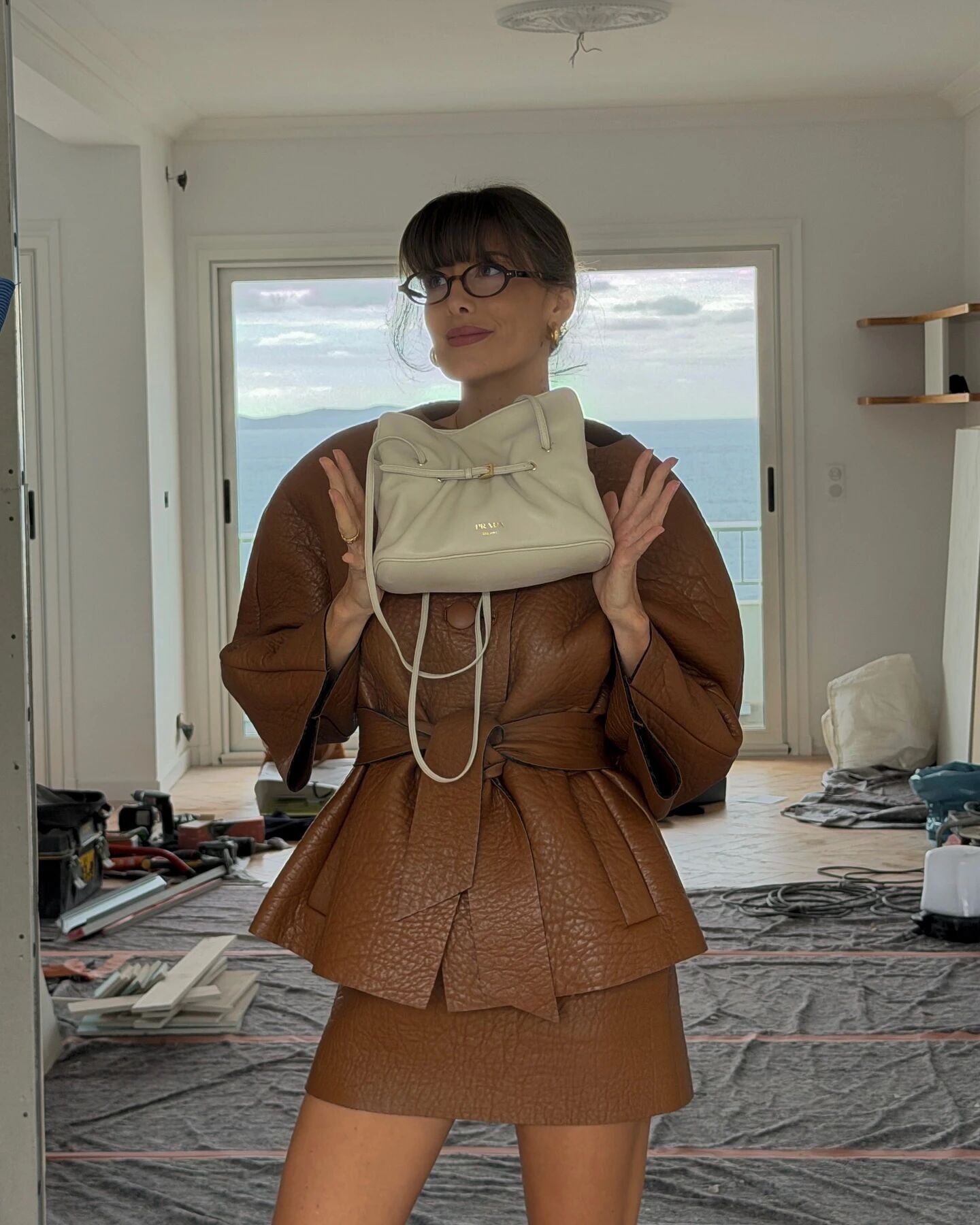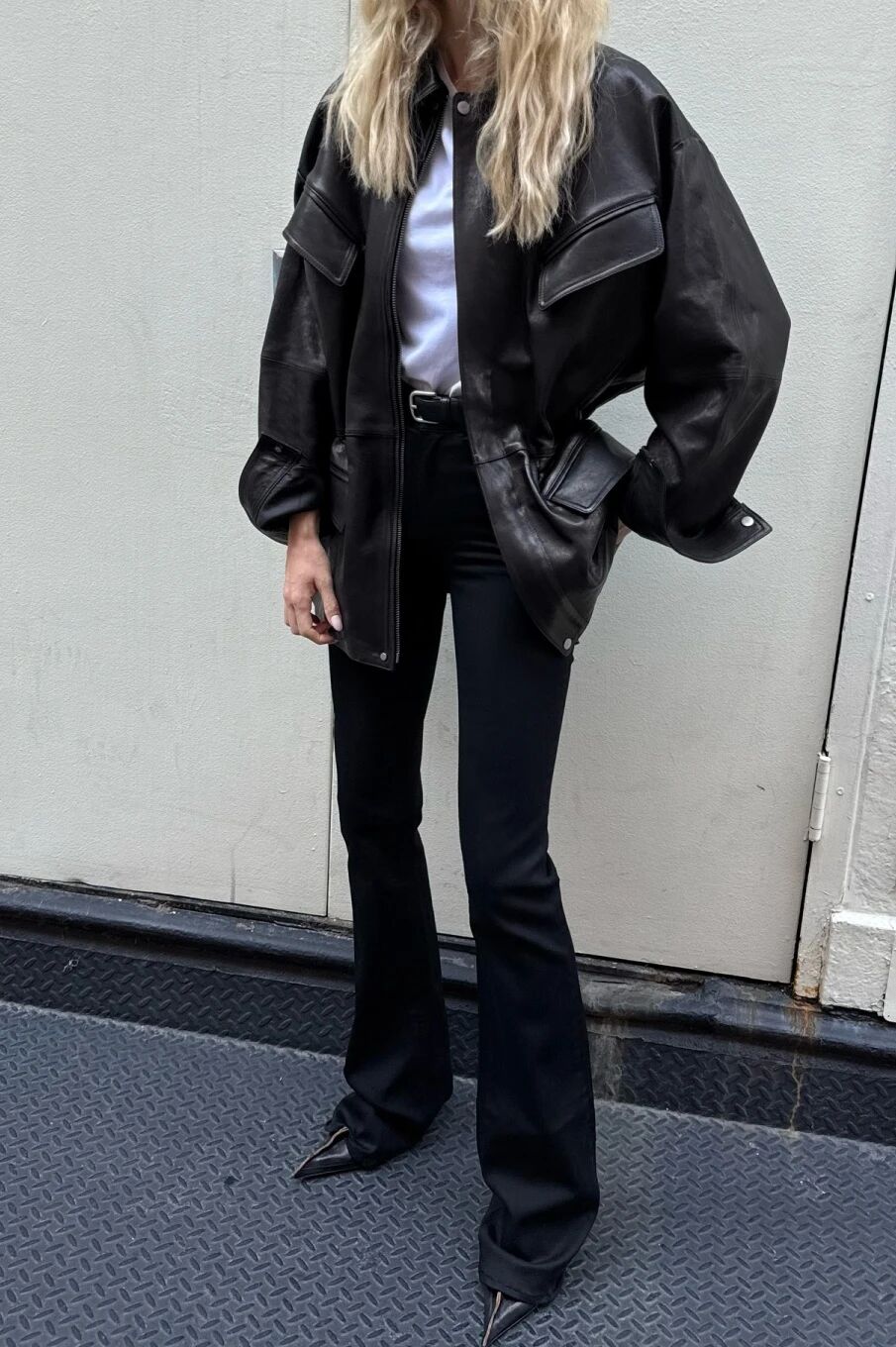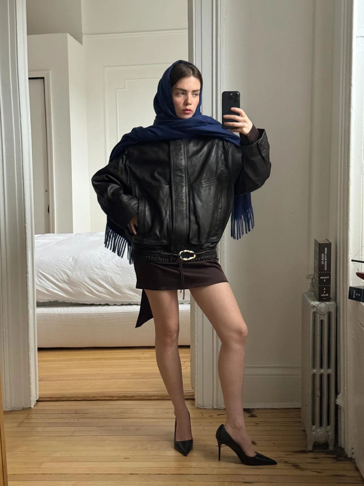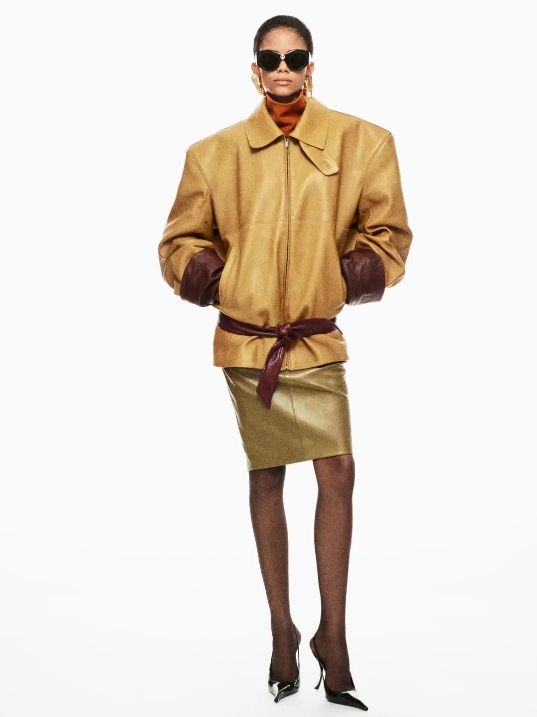 如果你不怕冷,甚至可以搭配裙子+中跟靴子,在冬天裡依然優雅滿分!今年秋冬皮夾克的寬肩趨勢,絕對是你不能錯過的單品~