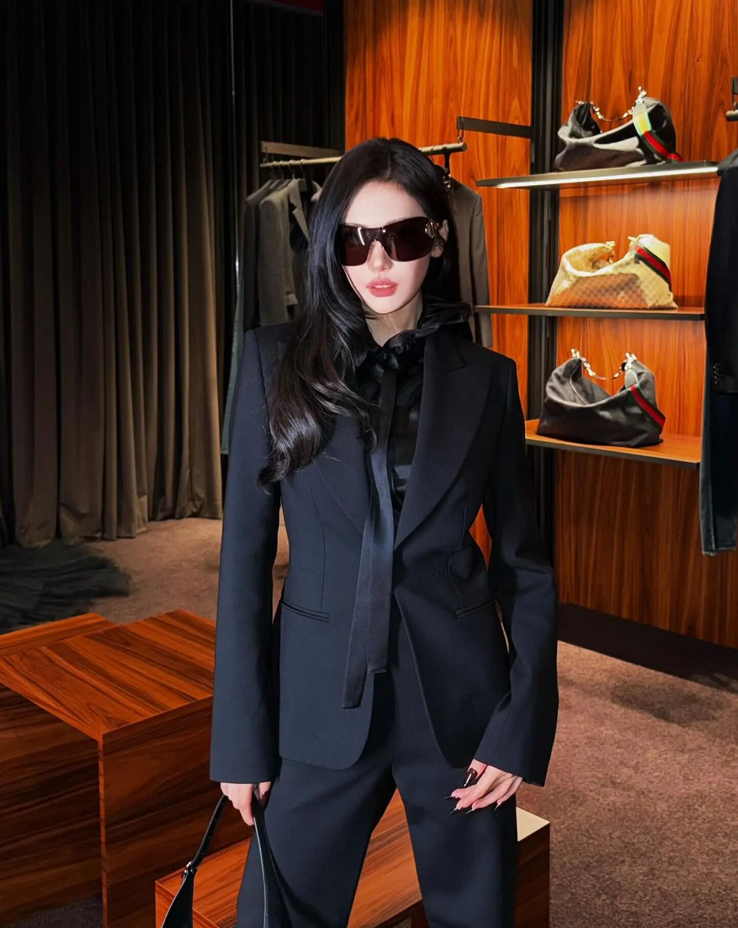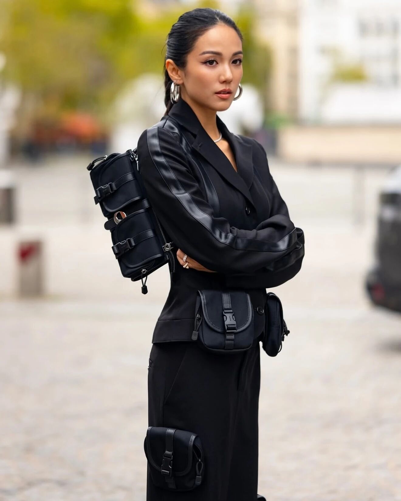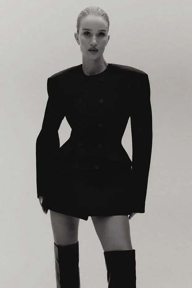 這種強化肩部、收緊腰部、形成倒三角的沙漏輪廓,不再只是單純的造型,更注入了一種充滿掌控感的強勢美學。它在告訴你:曲線,也可以超有力量!
