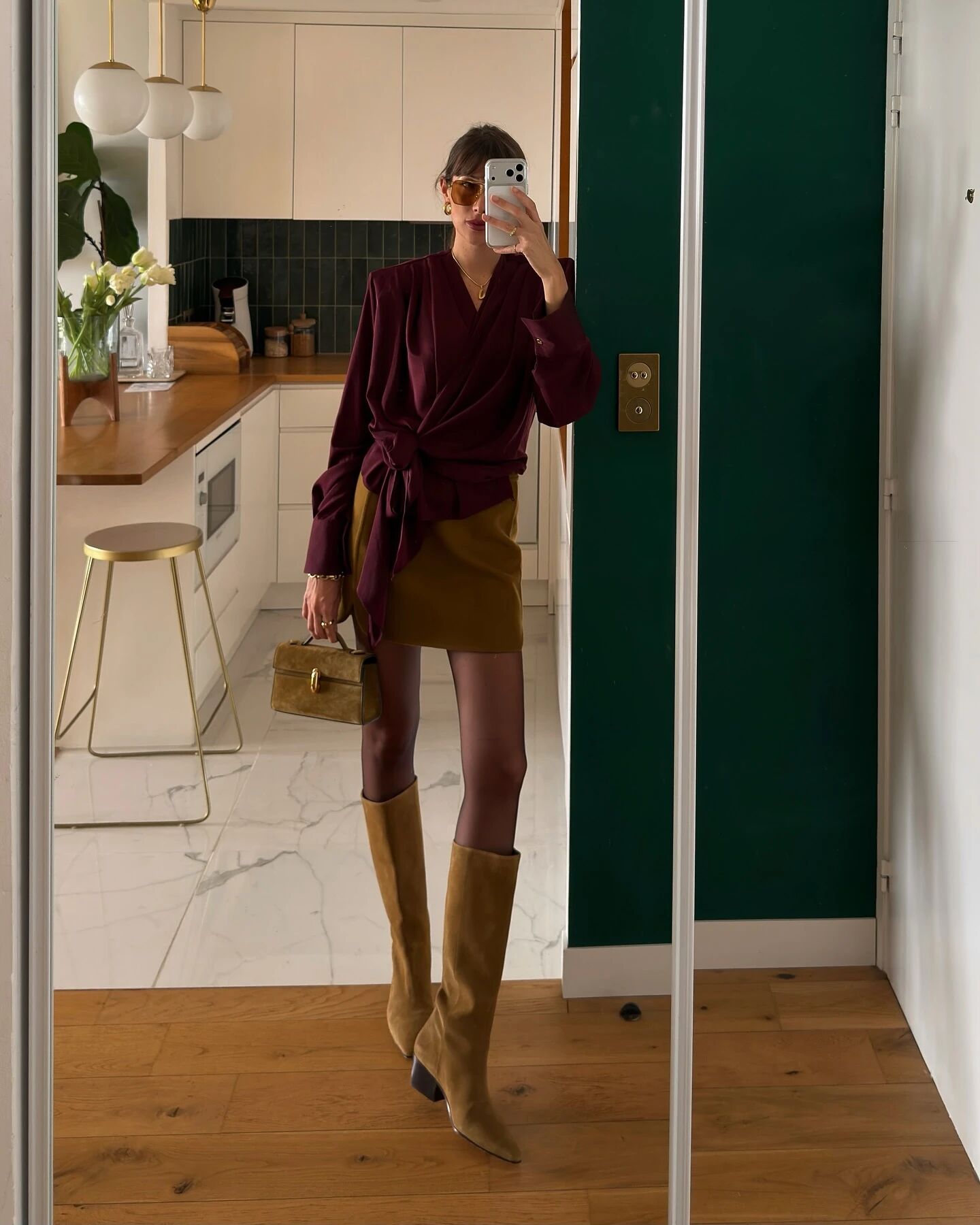如果是大衣類型的收腰外套,搭配緊身牛仔褲、小腳褲或Leggings,能瞬間消解上身的厚重感,顯得利落又精神。這種搭配特別能突出那抹被強調的腰線,讓整個人看起來精緻、幹練,充滿復古摩登的韻味♡