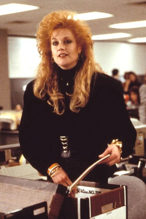一直到1980年代,職業女性大量湧入職場,Power Dressing(權力著裝)就此誕生。還記得電影上班女郎(Working Girl)裡,梅蘭妮·格里菲斯飾演的苔絲嗎?她穿寬肩西裝搭配鉛筆裙,完美塑造那個時代職場女性的典型形象。肩膀寬大有力,腰身卻依然緊束,這種沙漏型輪廓,變成女性在男性主導世界中爭取一席之地的無聲宣言。