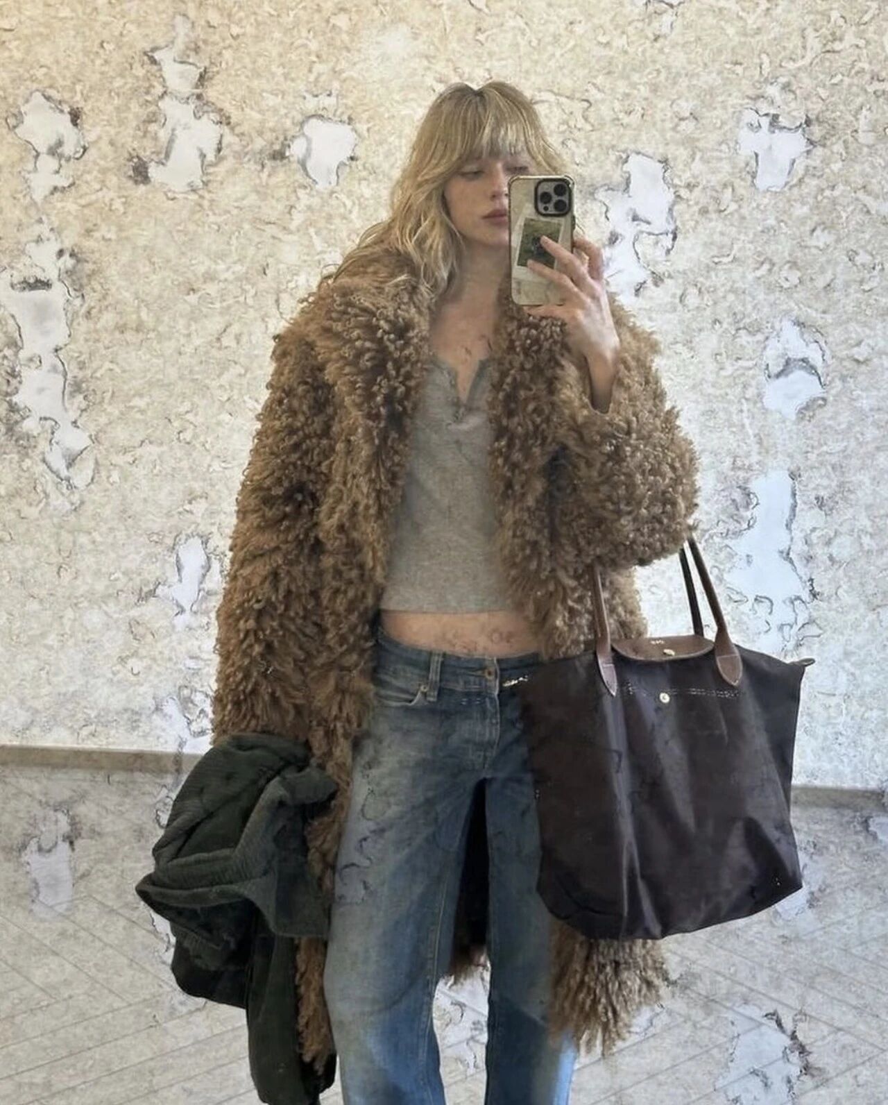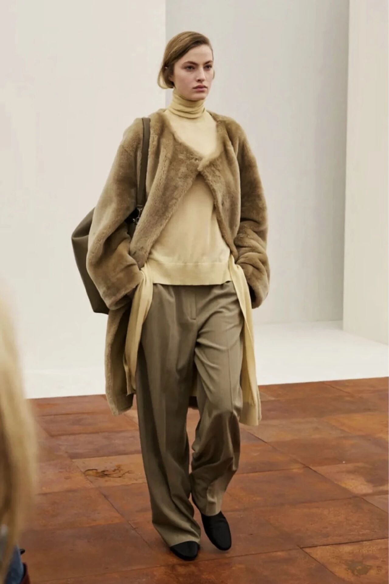 如果說泰迪熊外套是「可愛與酷」的平衡,那長款環保皮草則是「氣場與溫度」的化身。它不張揚,卻自帶距離感。跟傳統皮草不同,如今的環保皮草(Faux Fur)不僅輕盈親膚,更代表一種新奢華主義——既保留了質地的豐盈,又符合可持續時尚的價值觀,超有質感!