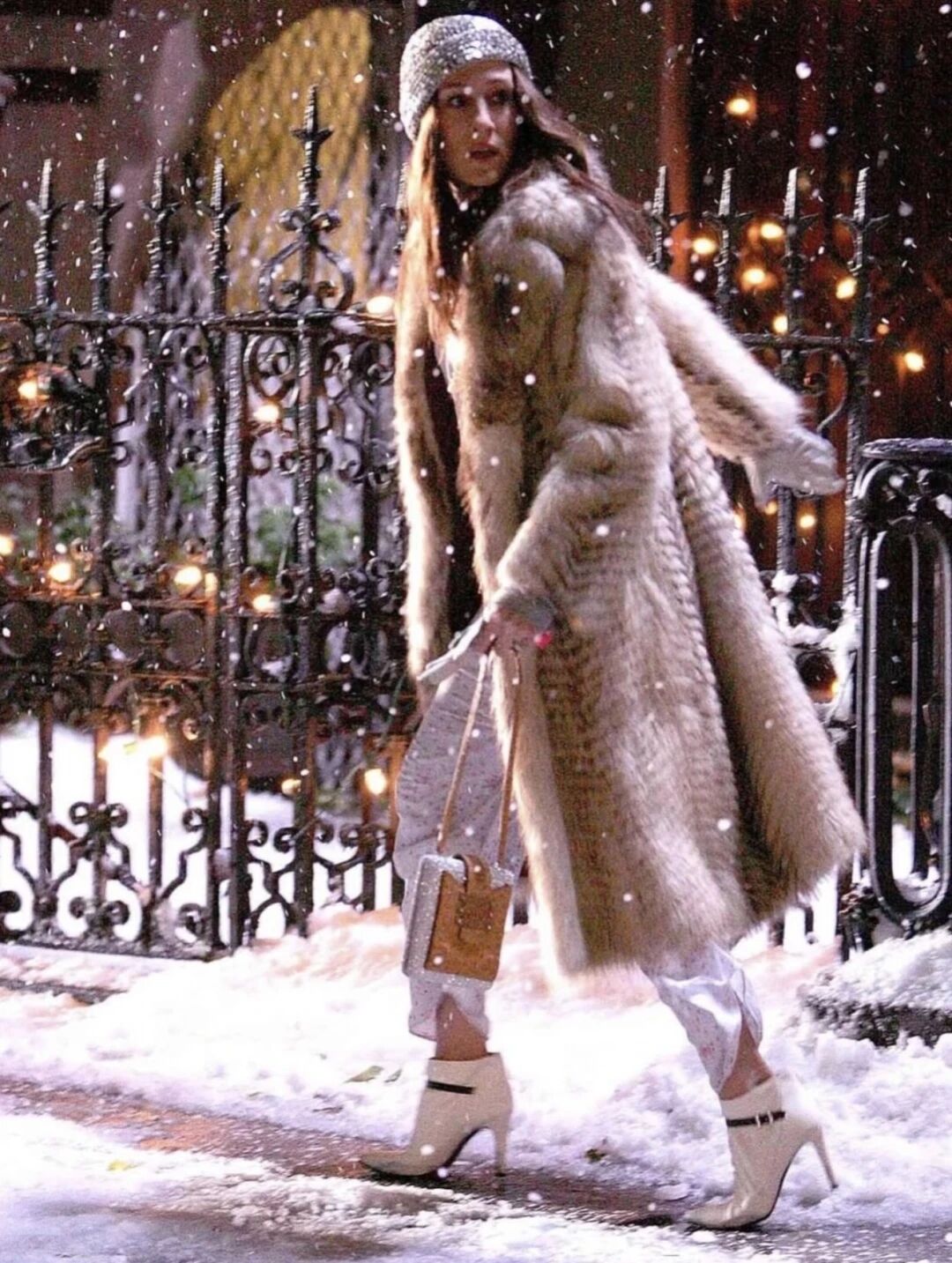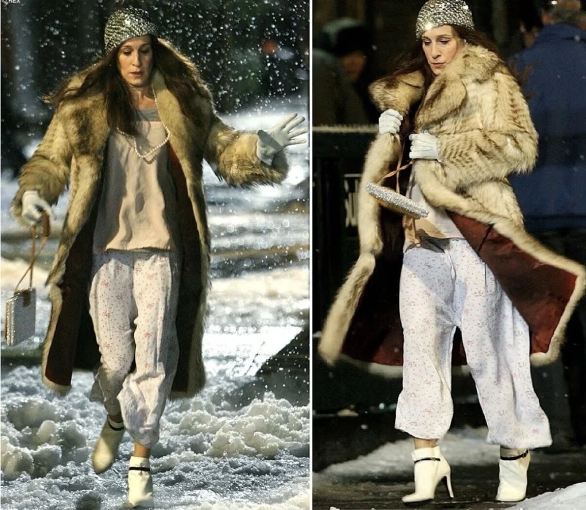 若說皮草「千金感」,就不得不提到慾望都市中Carrie那些經典的皮草造型。不管是光腿洋裙還是成套睡衣,Carrie都會在下面穿上一雙高跟鞋,這樣的搭配跟皮草相加不僅沒有怪異之感,反而讓曼哈頓的冬天都顯得時髦起來,真的超有魅力!