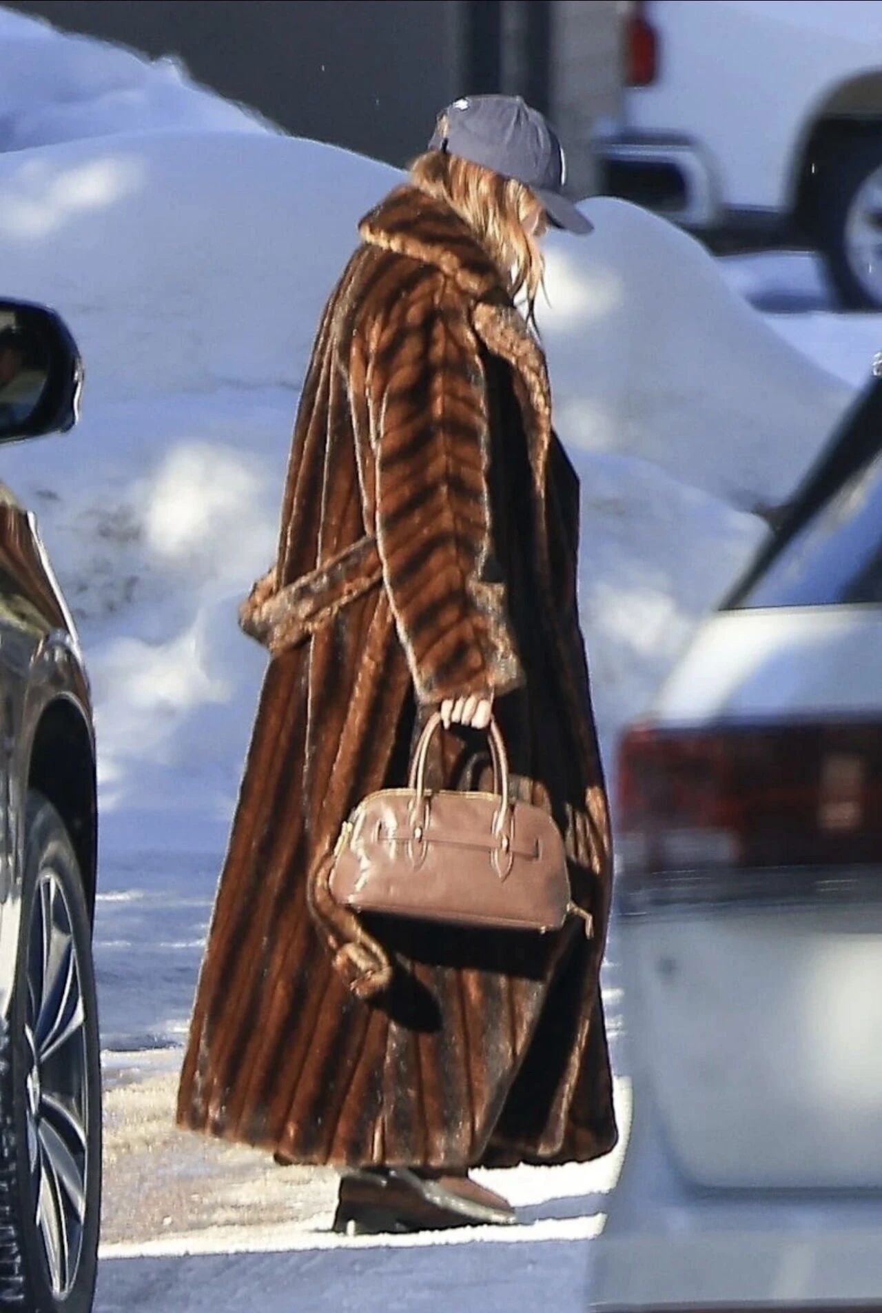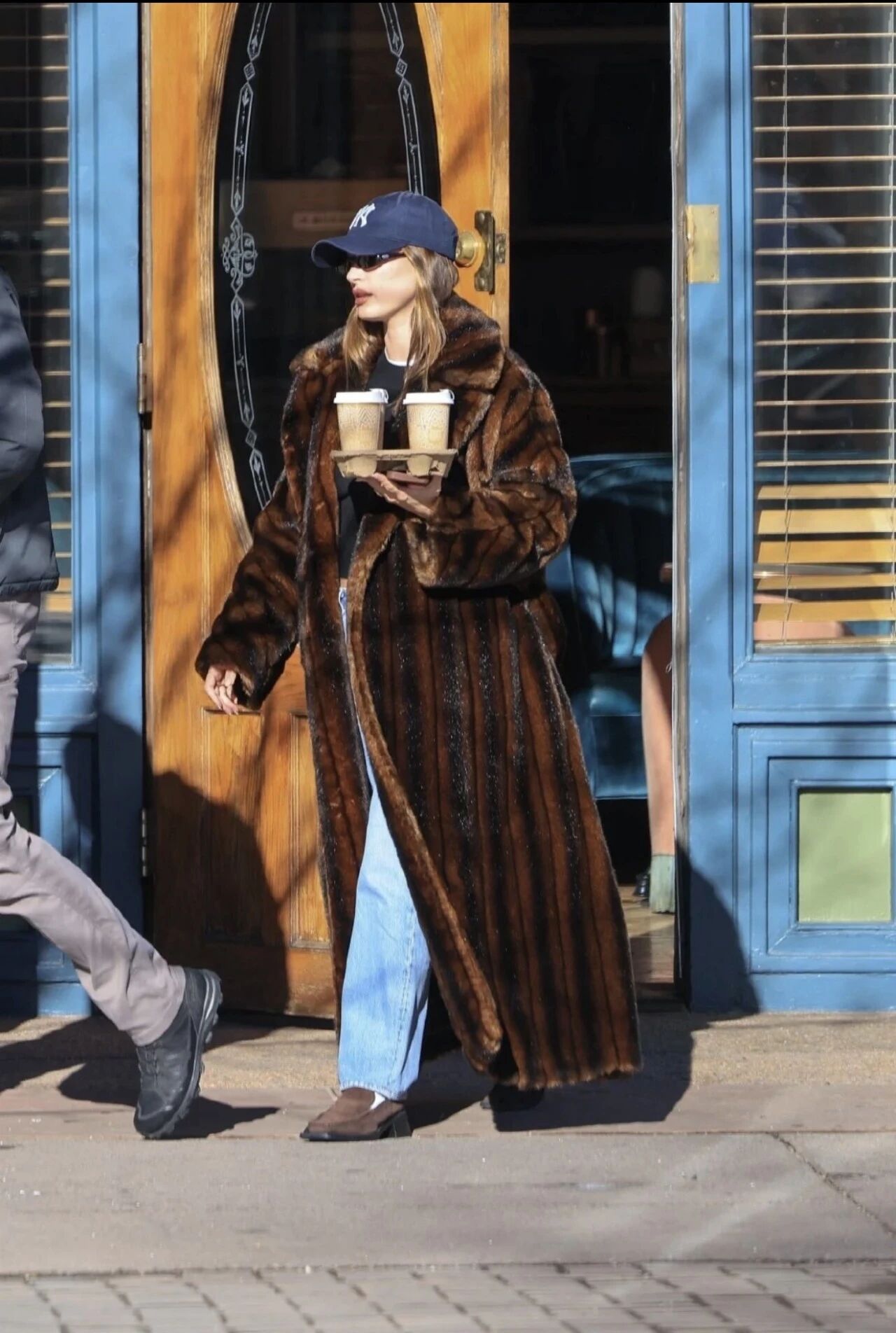帶火無數衛衣+長款外套的Hailey Bieber一樣沒放過長款皮草,年初在滑雪勝地Aspen度假的海莉被拍到身穿Ralph Lauren 1995 FW的超長款貂皮大衣在街頭買咖啡。這件20世紀90年代的時裝作品被Hailey重新穿出了第二重街頭韻味,棒球帽+簡單黑色內搭+淺色牛仔褲+麂皮單鞋,海莉穿搭依舊如此扛打,超有個性!