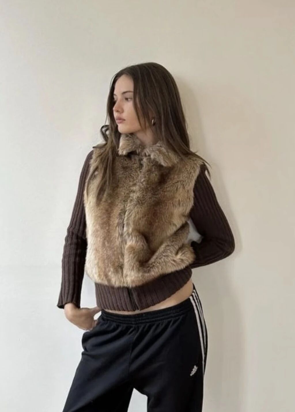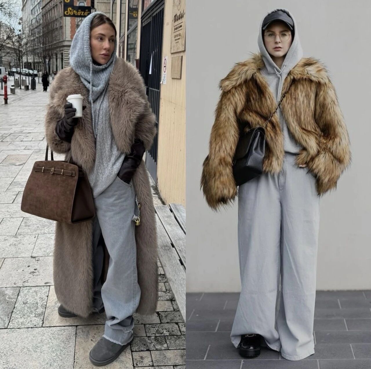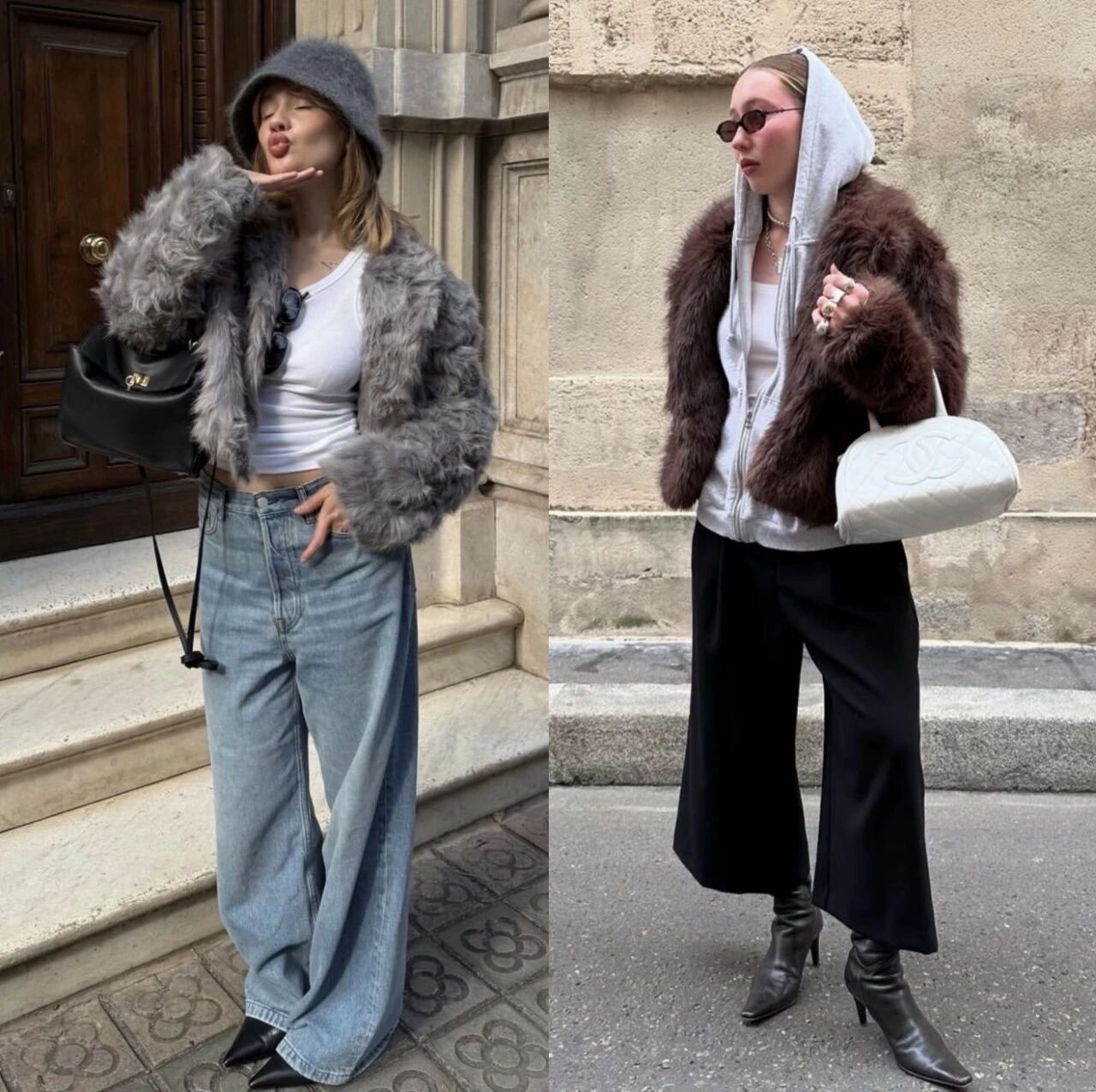 在短款皮草的搭配上,眼下最常見的組合就是內穿隨意的運動風。同色系套裝可以跟帽子無限疊加,腳踩高跟、皮鞋、ugg又或是運動鞋都能生成不同的冬日風味,但不變的核心是那種「說走就走」的隨意感,超有生活感!