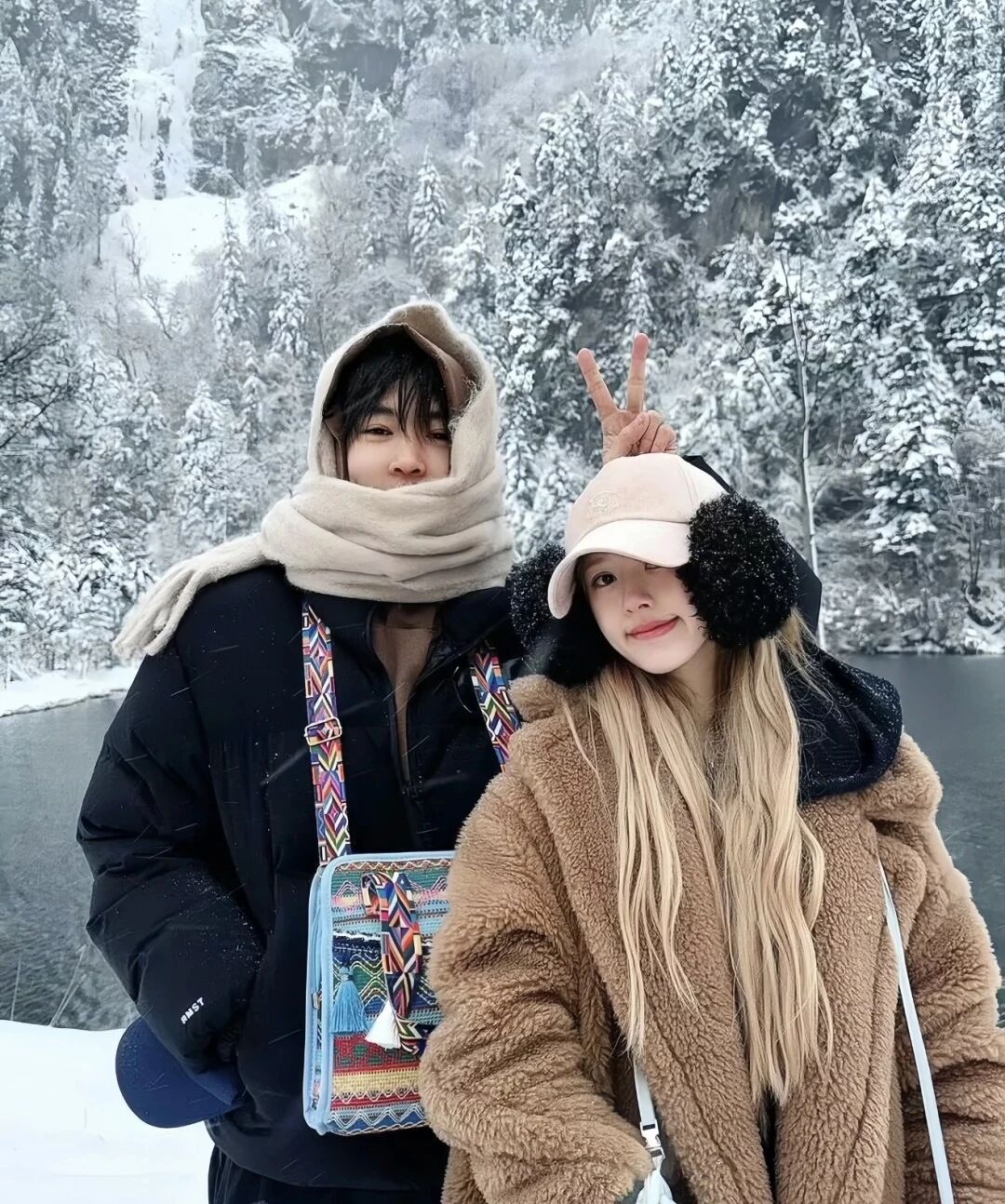 歐陽娜娜這組雪地照不負眾望地又帶來了一組拍照模板,米色短款皮草下穿深色牛仔褲,一條彩色的費爾島花紋毛織圍巾,誰說冬天穿搭厚重又不出片的,如此搭配隨手一拍就是偶像劇女主,真的超美!