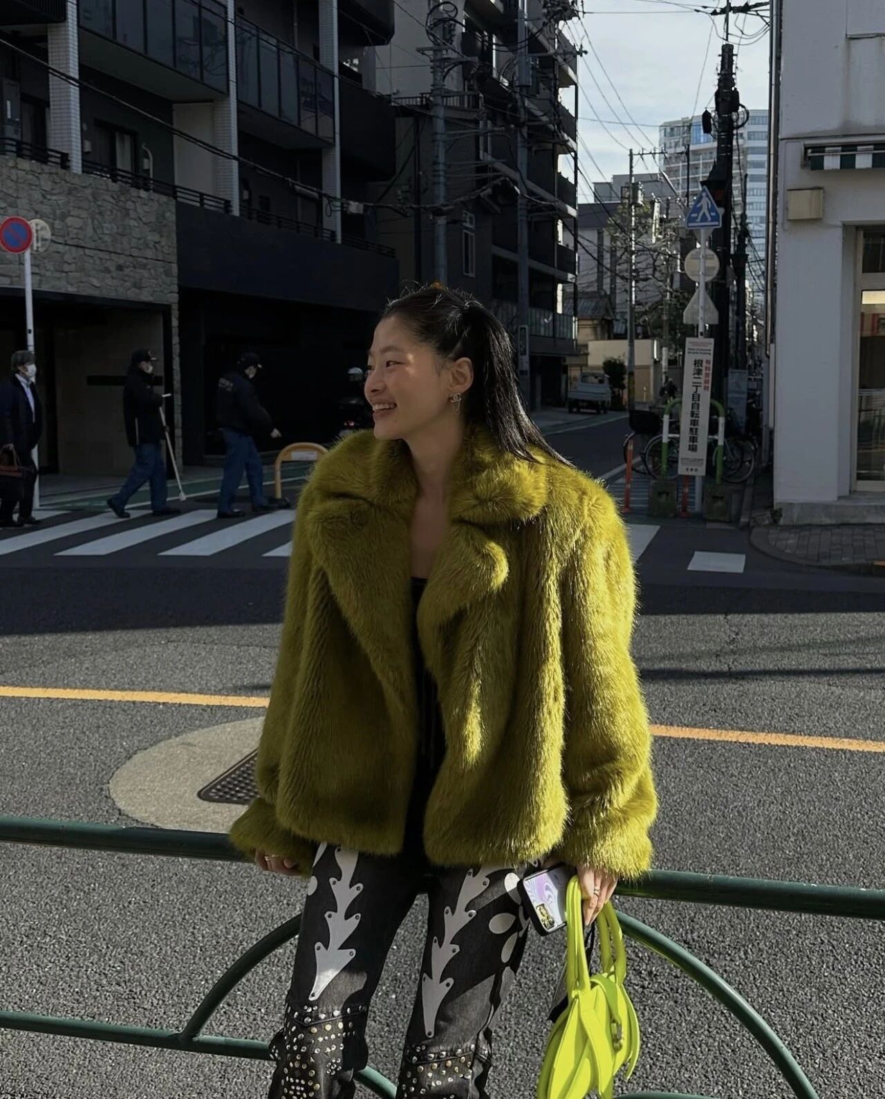 搭配方式也不複雜——讓毛絨成為造型焦點,其他部分越簡單越有張力。比如一件亮紫毛絨外套配全黑內搭,就是屬於時髦人的冬季信號,真的很有型!