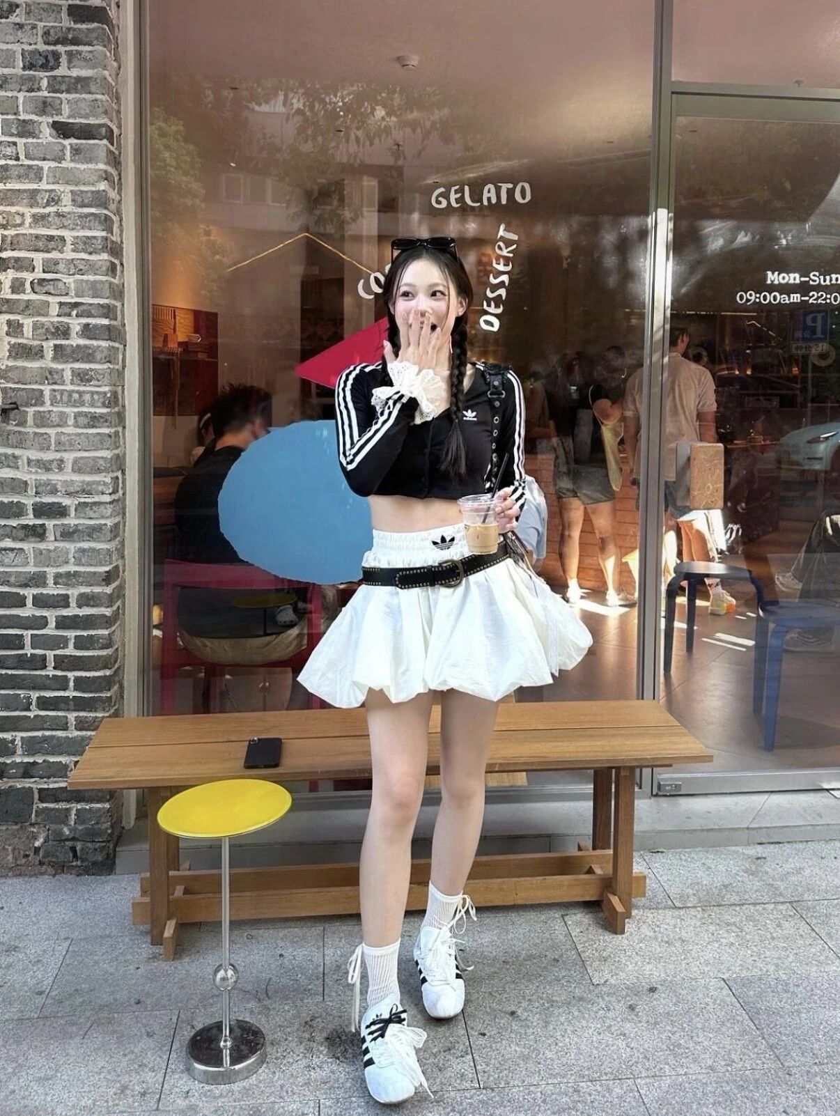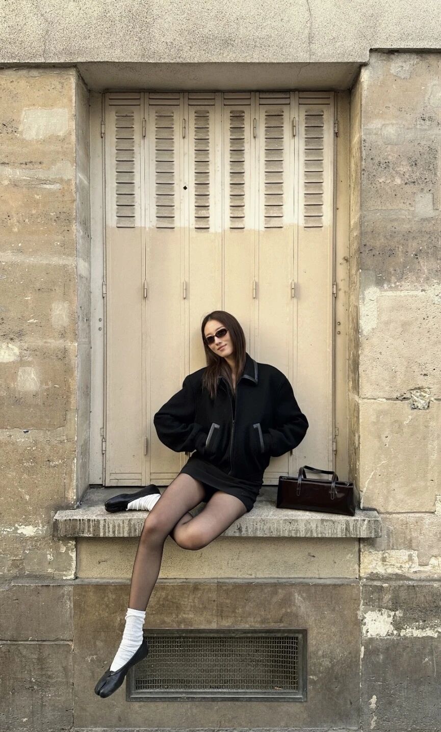 Look 3:硬核少女風 一字領緊身上衣配薄紗短裙,外面直接罩一件硬挺皮衣或牛仔夾克。用硬朗打破「乖巧感」,腳踩分趾鞋,溫柔與鋒利各佔一半。