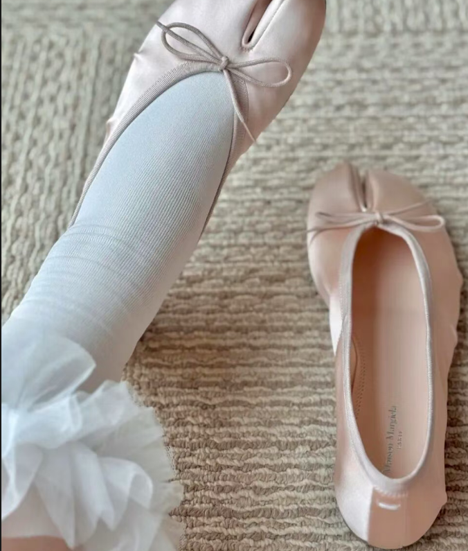 從 Miu Miu 秀場上鬆垮的堆堆襪套,到 Maison Margiela 的分趾芭蕾鞋,現在的芭蕾風不再只是「甜美」的代名詞。它開始有了稜角,有了態度,甚至帶了一絲「失序」的叛逆美感。