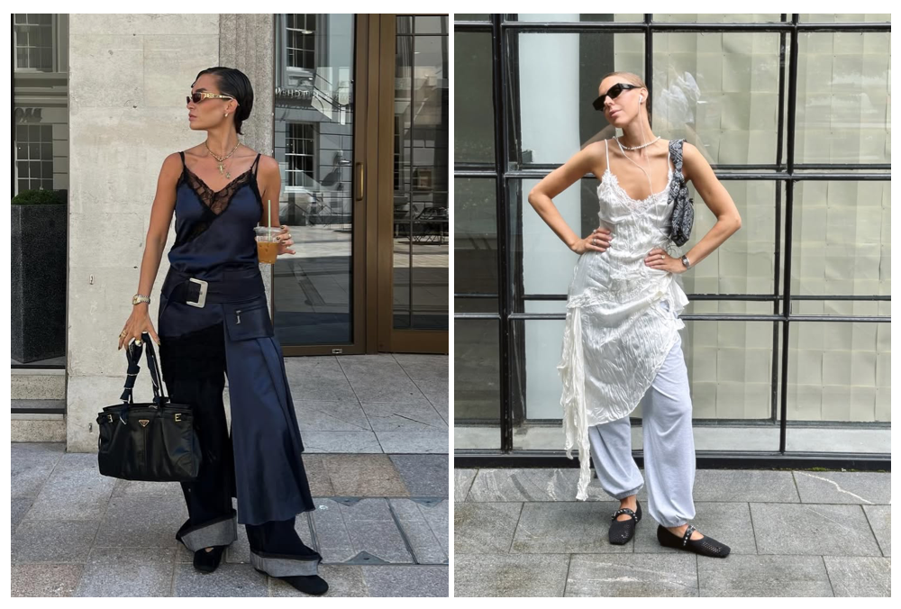 還可試試「上輕下重」的疊穿思路,在泡泡褲外搭配吊帶長裙,整體依然呈現A字廓形,層次豐富卻不臃腫,而像蕾絲、真絲等面料的融入,更能為造型注入一絲異域風情,超有味道!