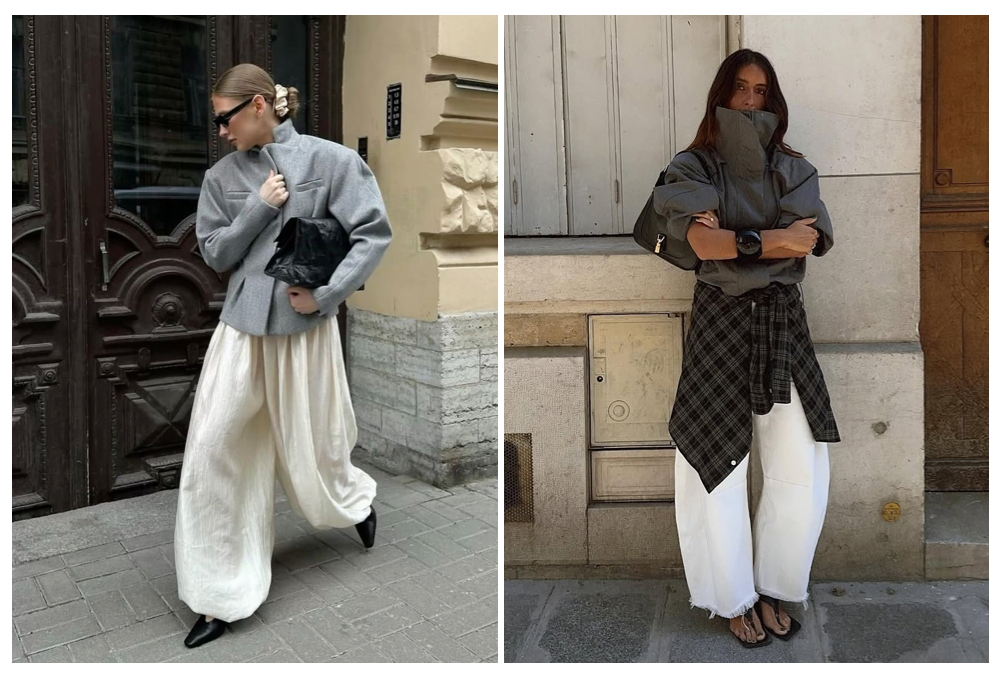 泡泡褲同樣適合與大廓形外套搭檔,尤其是剪裁利落、板型挺括的外套。簡潔的設計不會破壞褲裝本身的線條感,反而強化整體造型的結構張力,直接將時髦度拉滿,真的滿分!