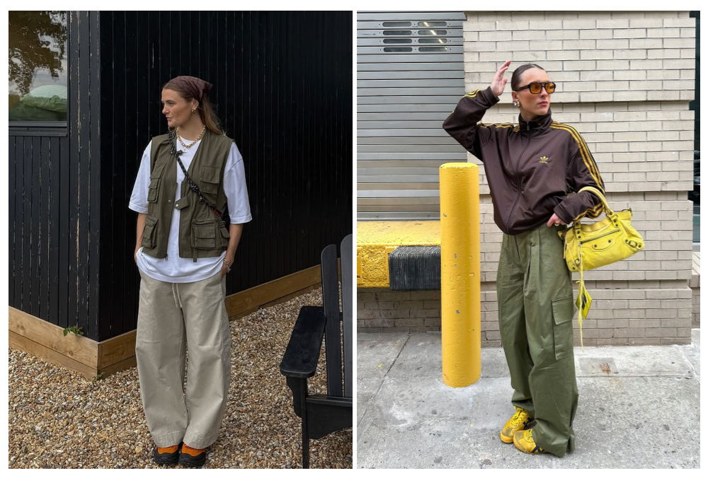 工裝風泡泡褲更適合戶外運動感造型,搭配機能馬甲或運動外套,強化整體層次結構與功能風格,褲身常以多口袋、抽繩等元素點綴,輕鬆穿出山系戶外造型那種率性又實用的時髦態度,超有態度!