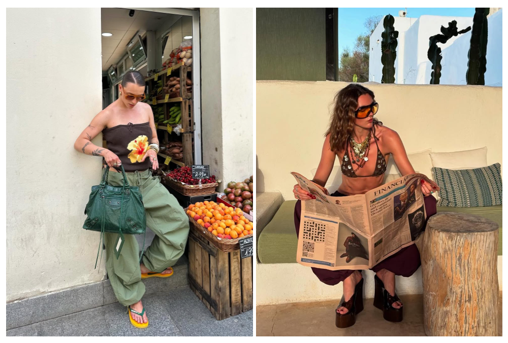 在度假的穿搭中,可以用泡泡褲直接搭配比基尼Bra或鏤空上衣,挑選印花或亮色款式呼應度假感,再配一頂草編帽與誇張墨鏡,立刻散發濃郁度假氣息,真的超chill!