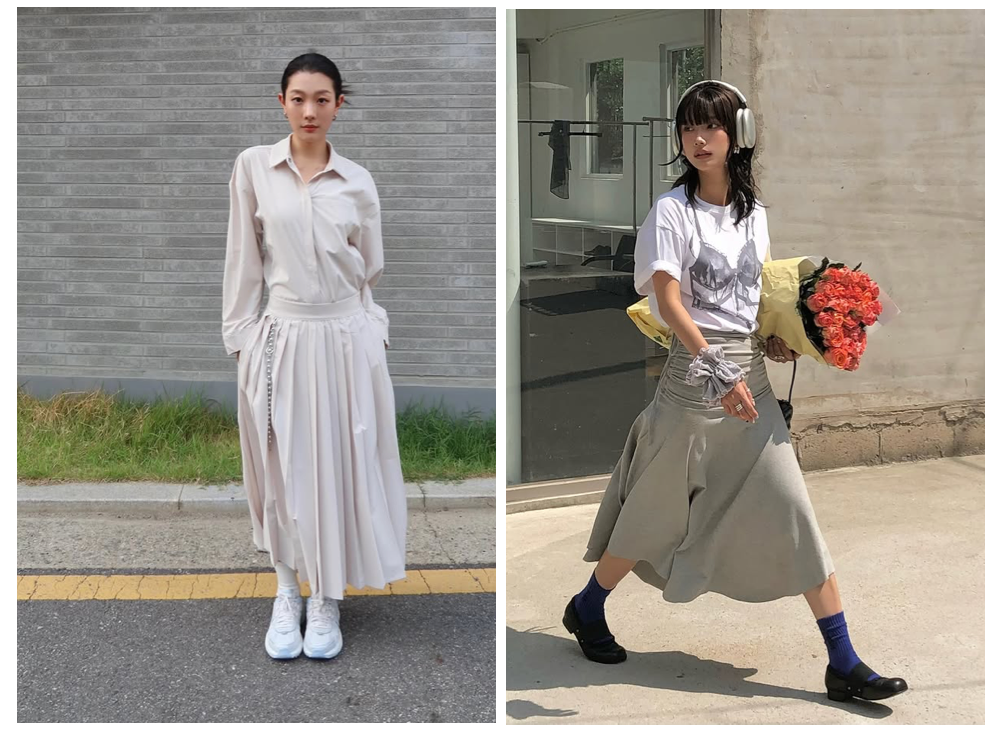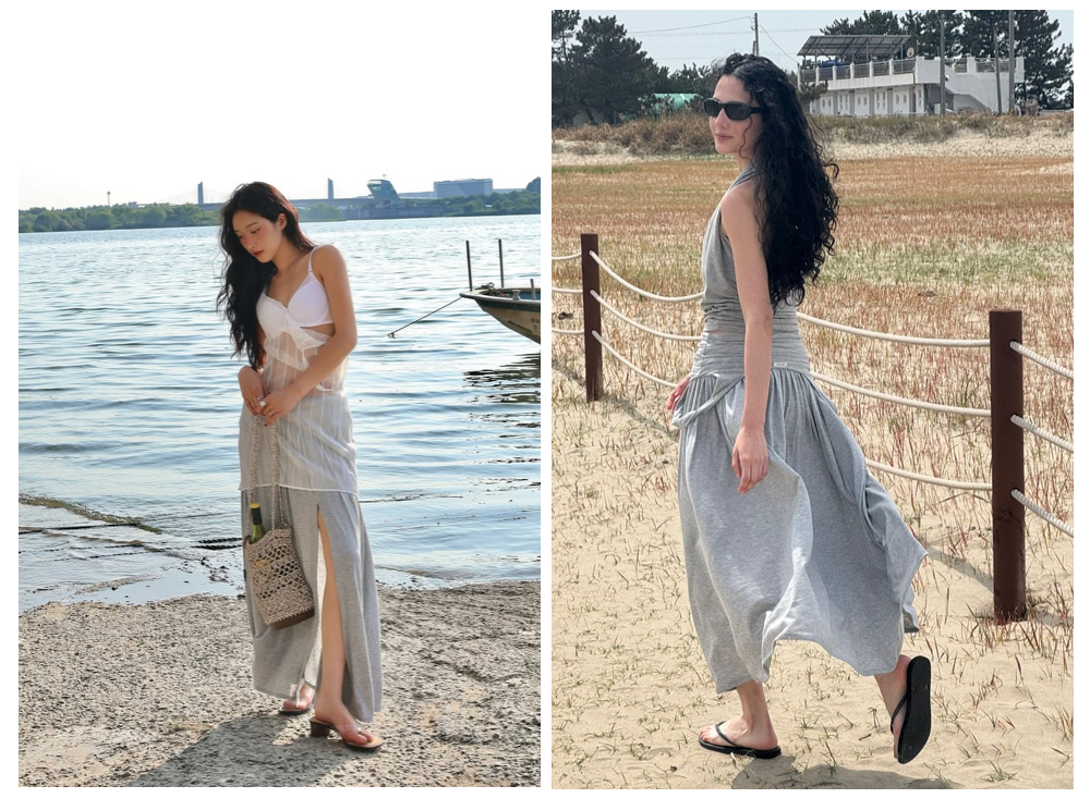 純灰與白色是最經典的清爽組合。灰色融入白色的純淨底色,立刻多了優雅沉靜的氛圍。搭灰色單品時,若選帶有清透感或光澤感的布料,就能打破灰色的沉悶,讓造型更有層次。