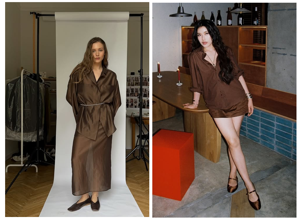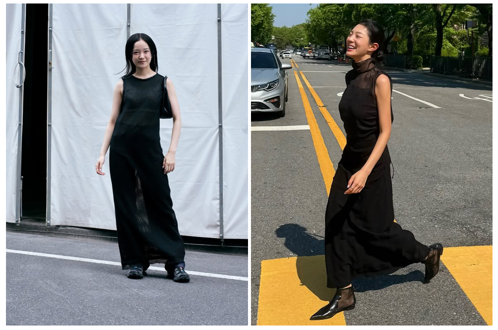 對材質的敏銳掌握,可以讓造型瞬間擺脫單薄。宋妍霏這件垂墜感十足的灰色連衣裙,搭配天然的棉麻襯衫,不同肌理與光澤感交錯出豐富質感,既塑造出清晰的層次結構,也穿出有品味的松弛感。