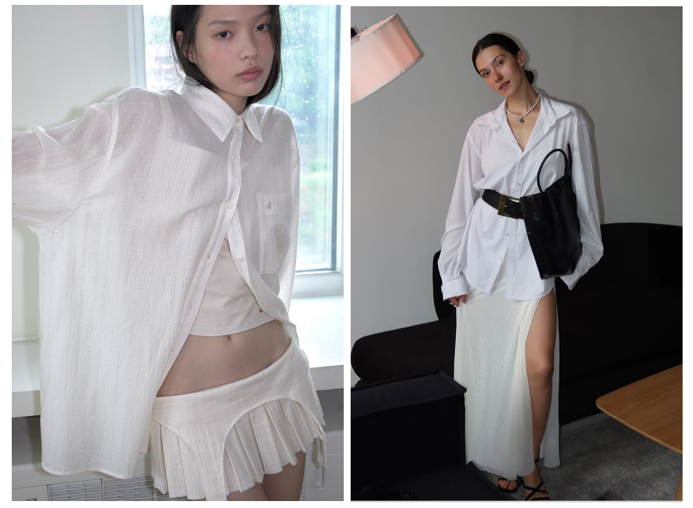 一件透氣廓形襯衫,能在慵懶與俐落之間找到平衡。隨意解開幾顆鈕扣、衣擺自然垂落,或深V領口延伸出頸線與鎖骨,都能散發清爽灑脫氣質。