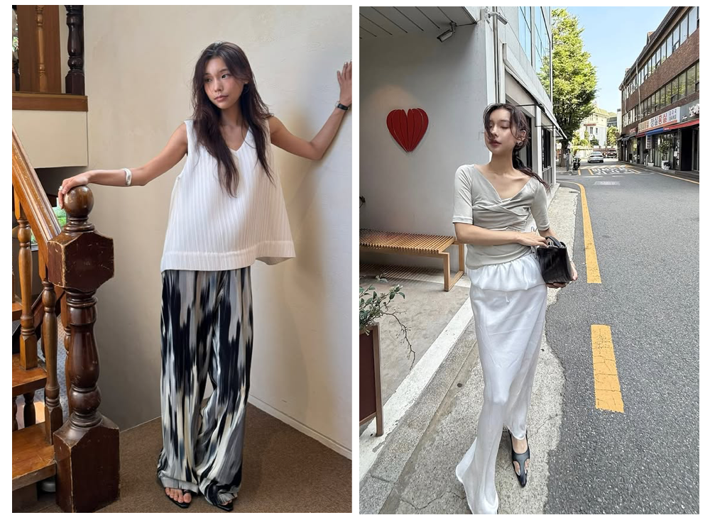 擁有垂墜感的長褲,能讓造型更立體,線條自然流暢。搭配簡約小背心或短袖,就能展現鬆弛又有張力的美感。