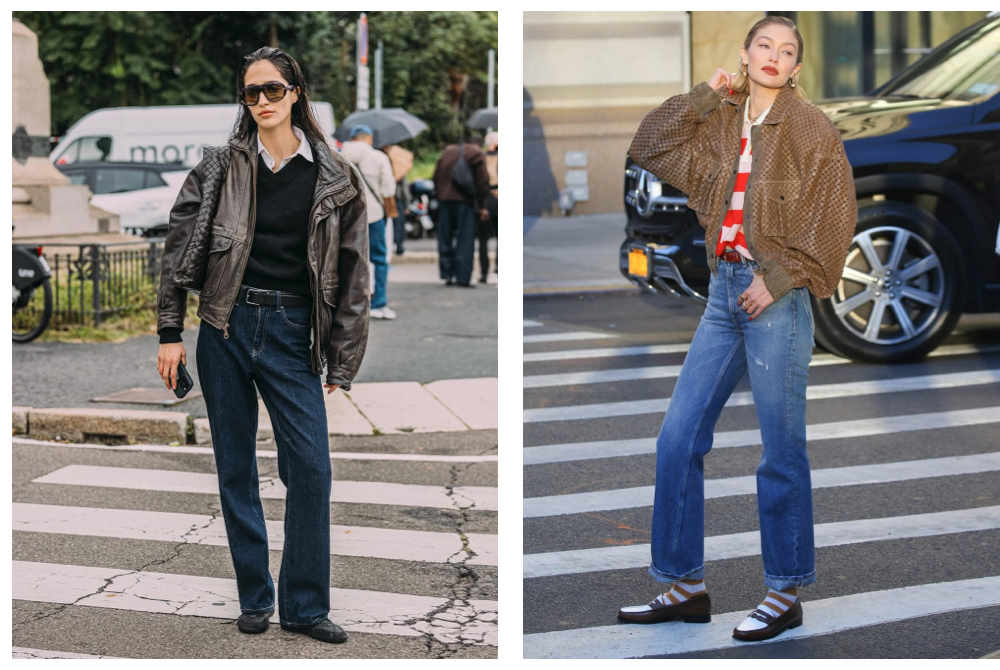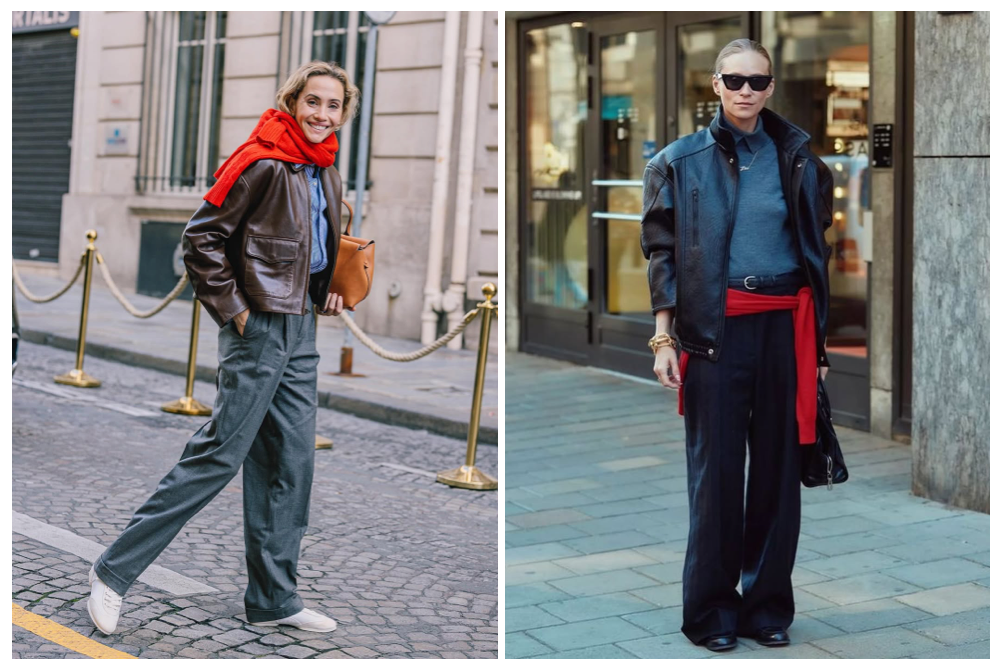 西裝褲本身很颯,但怕老氣?直接配復古樂福鞋或運動鞋,上面再丟一件硬挺厚皮夾克,軟硬兼施,既保留利落感,又超實穿!