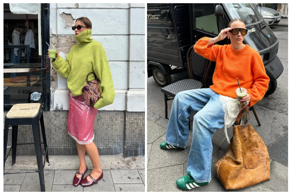 材質混搭才是高階玩法!軟糯羊毛毛衣配亮片半裙,或是偷偷加一點蕾絲細節,整個氣質就在復古跟沉穩之間遊走,超有層次。