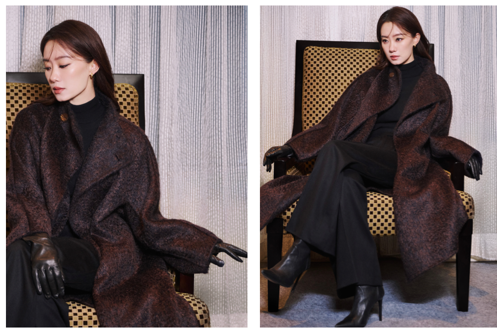 張小斐這身帶垂墜感的大衣+長褲乾練到不行,再加一雙皮手套,不只把線條拉得更俐落,還偷偷流露出一絲溫柔韻味,真的又帥又撩!