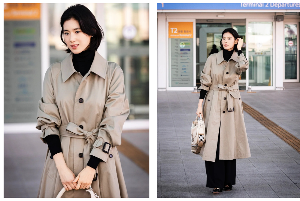 鄭恩彩的風格一直都是隨性自然,這件自帶隨性褶皺的風衣,大面積又不綁手綁腳的剪裁,輪廓鬆弛有度,配上她那顆帥氣短髮,散發出一種完全不諂媚、不刻意迎合的獨立女人味,超級有態度!