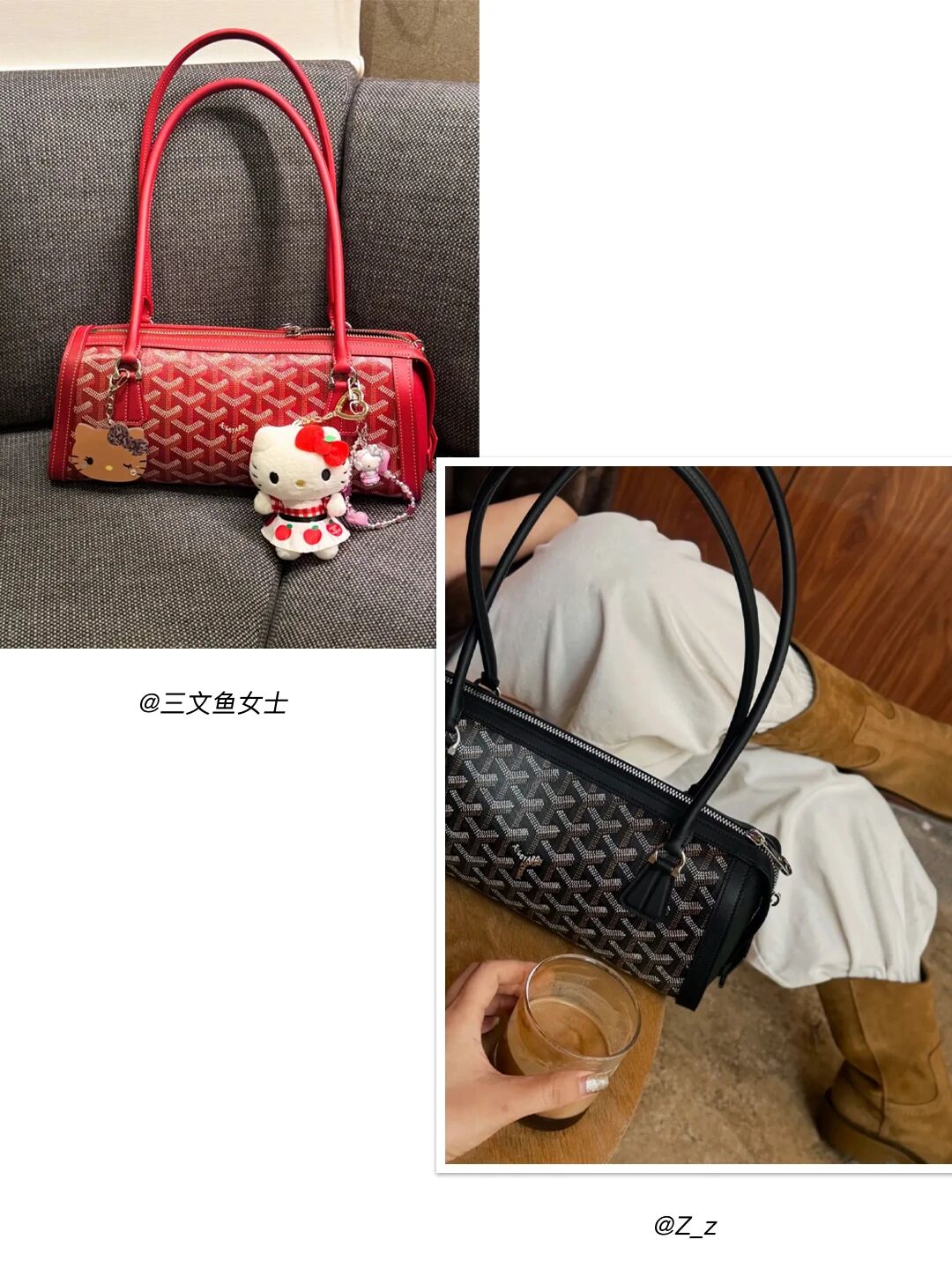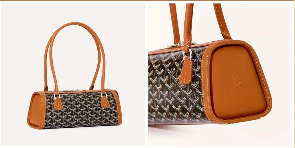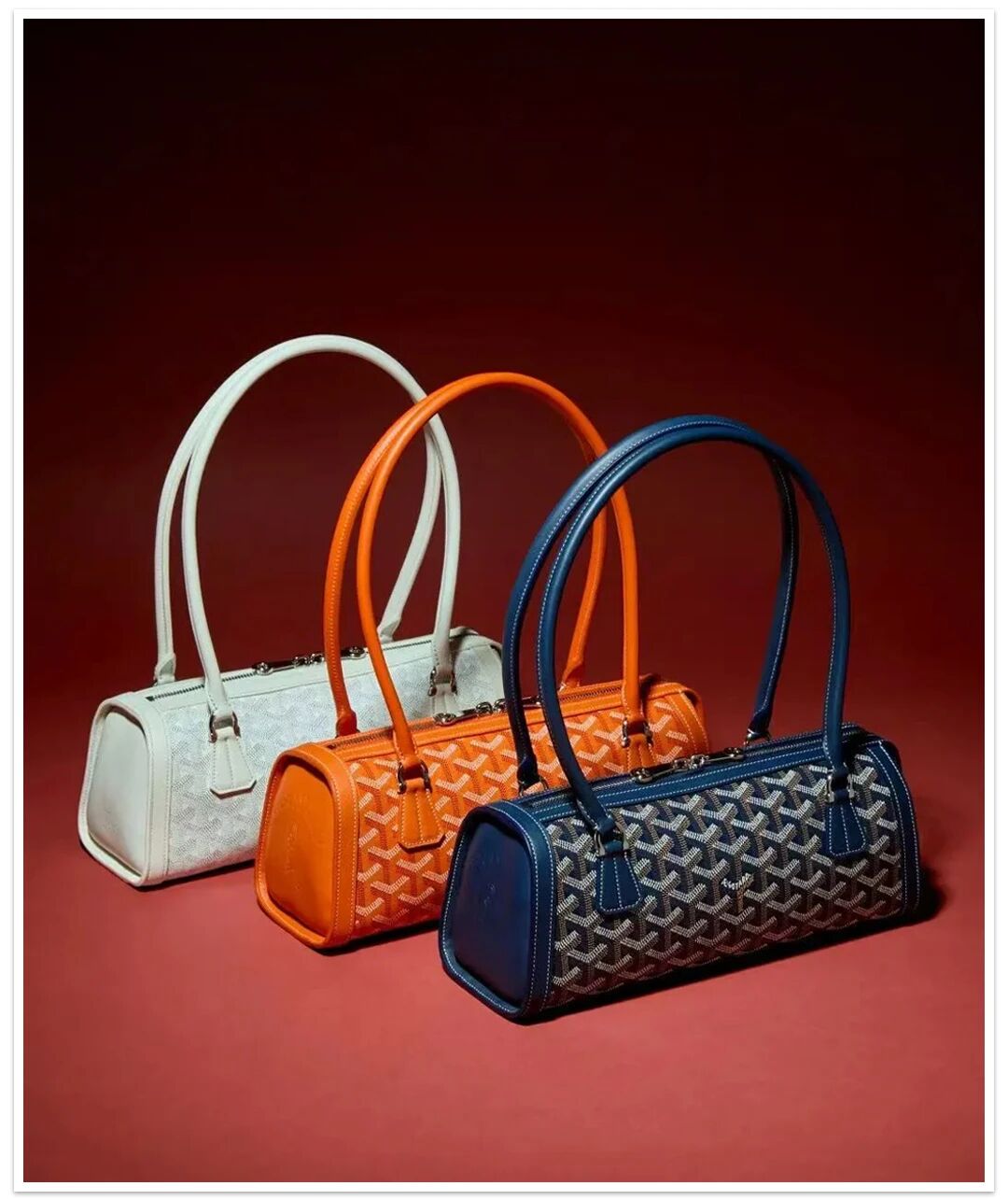 Goyard 的高級,從來不在 Logo 上,而在質感、紋理、輪廓和耐操度。經典 Y 字印花耐磨、防水,而這只法棍包還擁有著品牌拿手的挺括感,長時間使用也不易變形,越用越有復古質感。