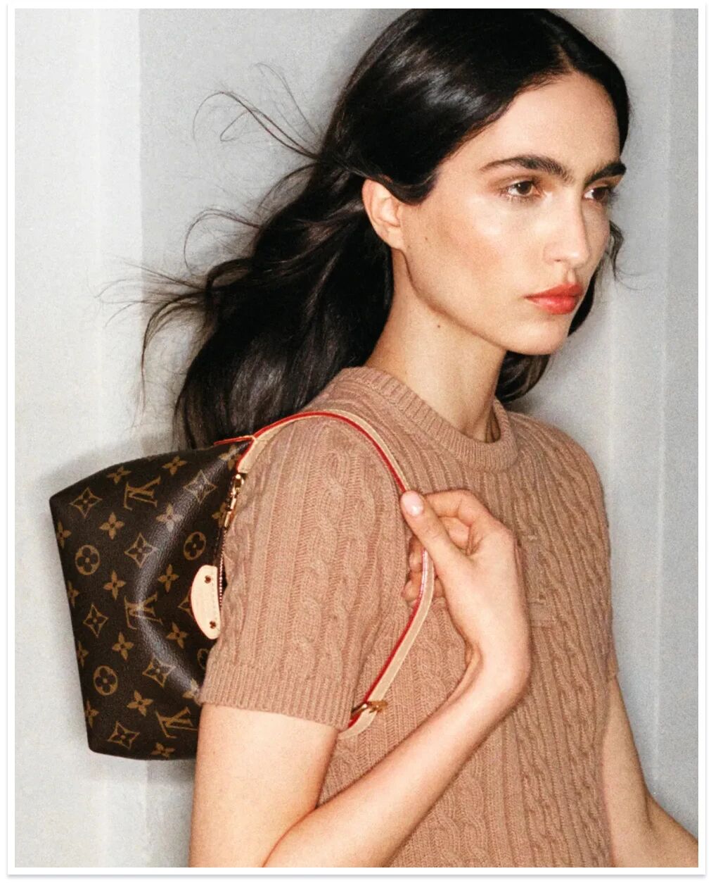 在形象大片中它也是主力包型,模特兒很美很鬆弛,但這隻包還是很容易成為視覺焦點。