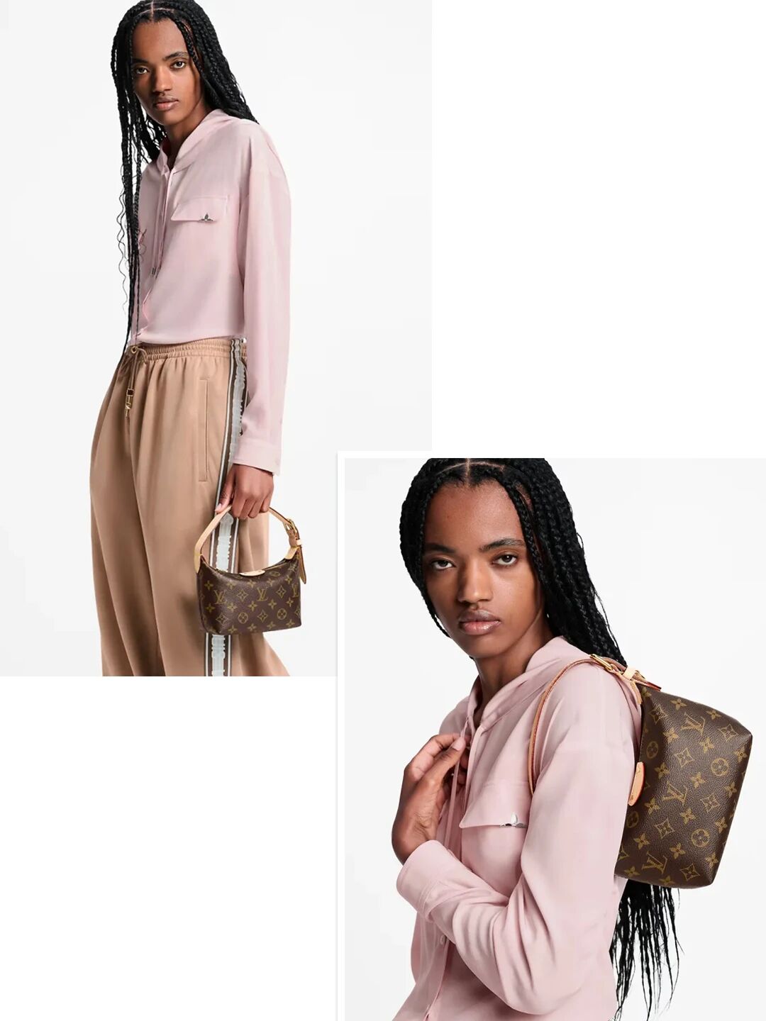 官方模特兒很好地示範了包包的兩種背法,雖然包身不大,但從圖示可以看到,當季的輕薄衣物是可以適配單肩背法的。